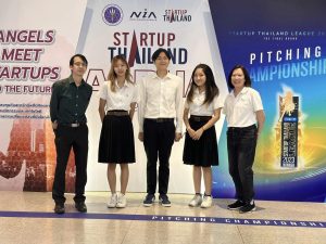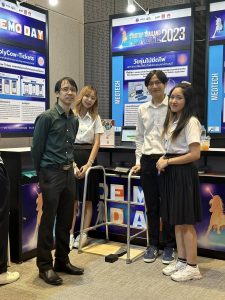 ทีม “วัยรุ่นไม้ขีดไฟ” ตัวแทน มจธ. ที่ได้เข้าร่วมแสดงผลงานในกิจกรรม Startup Thailand League Demo Day 2023 ซึ่งจัดขึ้นโดยสำนักงานนวัตกรรมแห่งชาติ (NIA) ที่ True Digital Park West